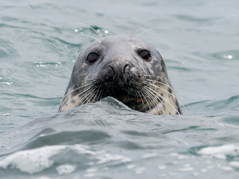 The cliffs around the island are home to guillemots and razorbills. These two were involved in a fight, which ended when one was forced over the edge. He dropped but managed to right himself before landing safely much further down. ![]()