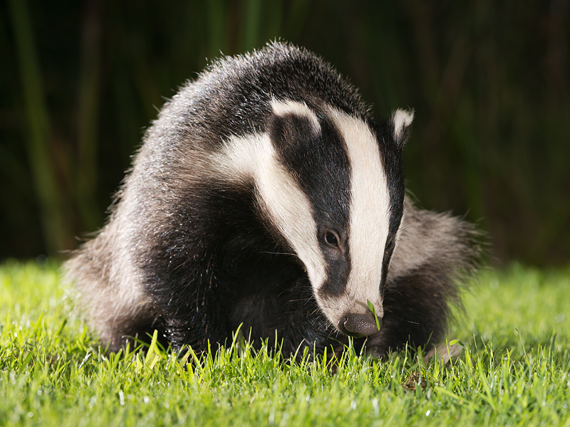 Badgers in Dursley, August/September 2012 I have turned my attention to some local badgers. Unfortunately, these live very close to Dursley and it is rare to see them out in daylight. Hence, it has been necessary to use artificial light. One of this year's cubs, in particular, is now used to flashes and so it is possible to get some good shots as he comes to feed. A continuous bright light is also needed to aid focusing in the dark. The penultimate picture was taken in pouring rain - the rain drops look like stars in the sky! ![]()