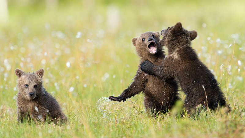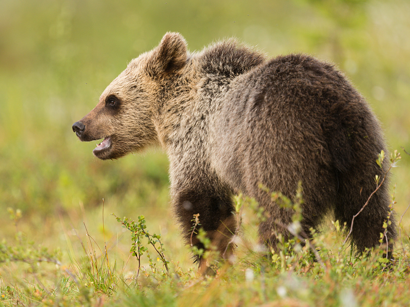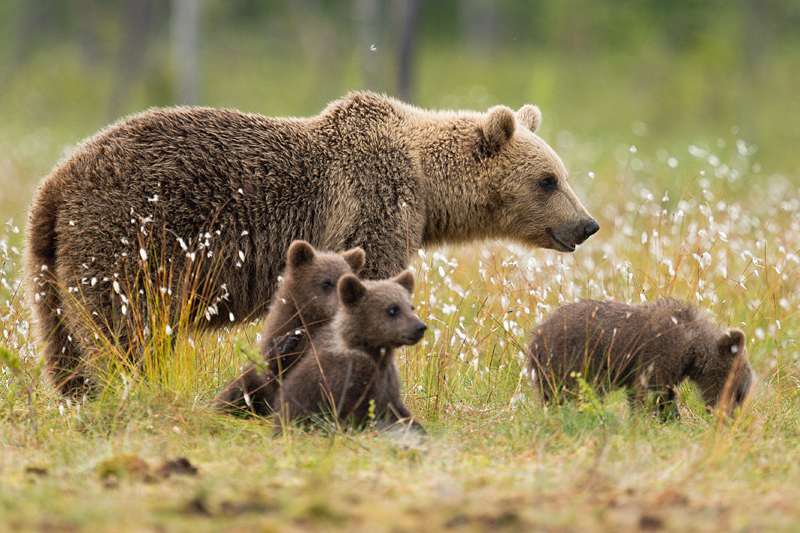 Finland, July 2012 Some images of Europe's top predators from a trip this month to a remote area of Finland close to the Russian border. The weather was far from perfect, and luck with wolves was poor, but here are some images of wolves, brown bears and wolverines. A brown bear mother and three cubs in the "swamp" at Martinselkosen. ![]()