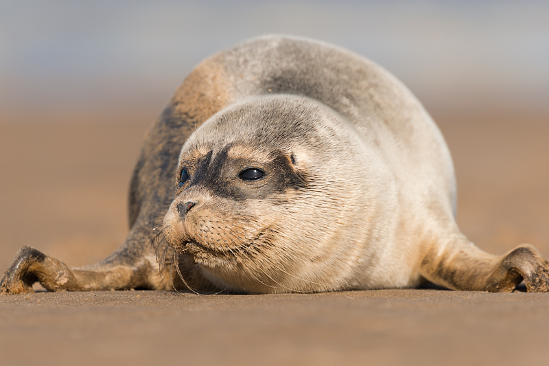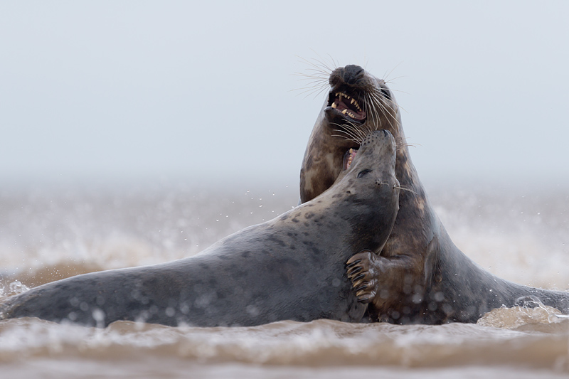 Seals at Donna Nook, Lincolnshire, September 2012 An early autumn weekend at Donna Nook on the Lincolnshire coast provided a wealth of opportunities to photograph adult and juvenile grey seals and some common seal pups. The common seals were born earlier in the year and have left their mothers, and now congregate with the greys. The greys themselves will be pupping in a couple of months, a time when it is best to leave them in complete peace. The seals are on a large sand bank a mile off the coast. This is reached by an arduous trek across mud and sand at lowish tide. We were fortunate in seeing some sun, but the wind remained strong over the whole weekend leading to sand storms after the bank had dried out. This added to the range of images but meant we had to be extra careful with our equipment. ![]()