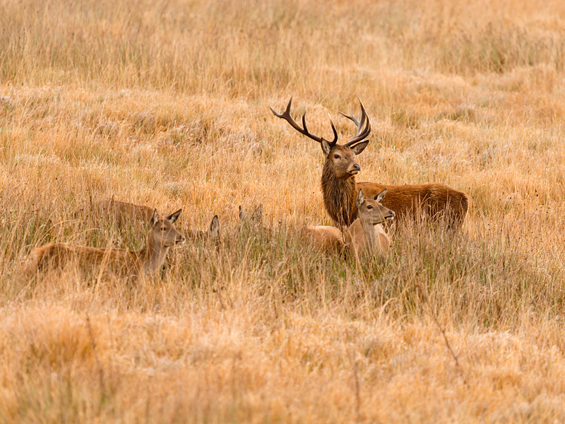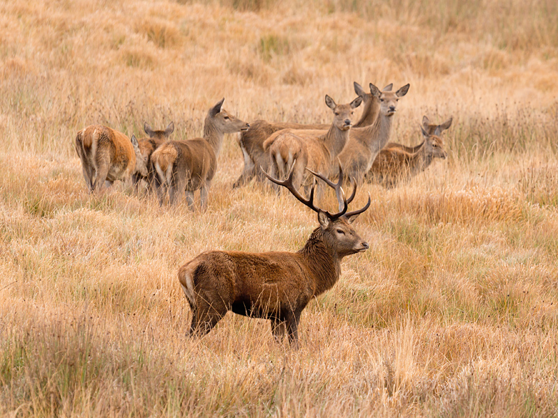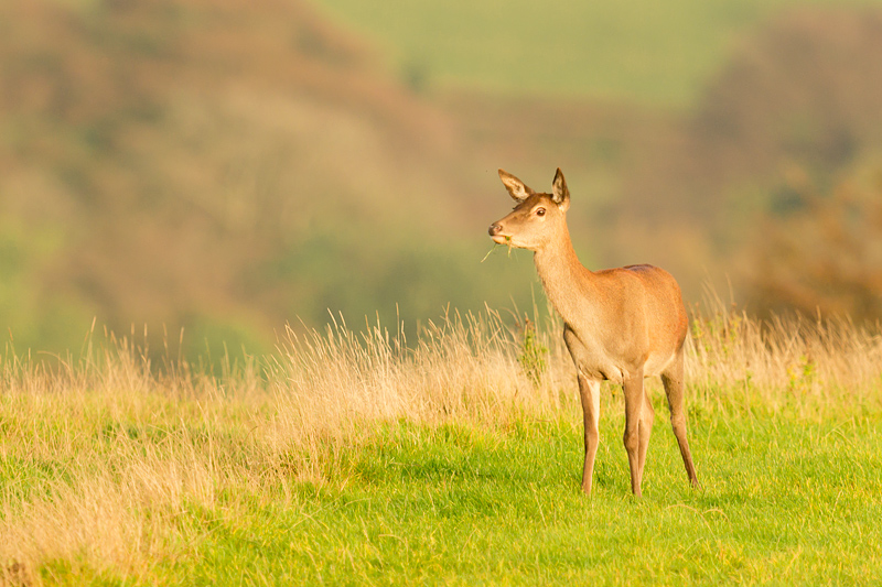 Exmoor, October 2014 The first of a few pictures from a fortnight on Exmoor. I spent some early mornings and evenings attempting to photograph deer in three different places: the high moor, the lower slopes of the moor, and further down just above the wooded valley of the River Barle. On the high moor I came across two groups of red deer, an older stag with approximately 20 hinds and juveniles, and a younger one with just a few. The older stag spent the early morning watching the younger and bellowing to keep him away. ![]()