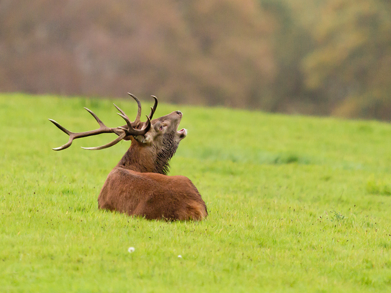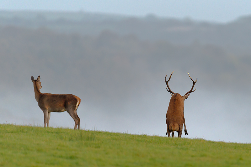 The lower slopes proved to be unfruitful, but above the Barle valley, a stag and a few hinds would appear just before dusk in an ungrazed field. Despite the handicap of just one eye, few other stags ventured into his territory. Those bellowing from the woods were kept at bay with a few roars from himself, even when sat down. But one larger stag did venture out late one evening. ![]()