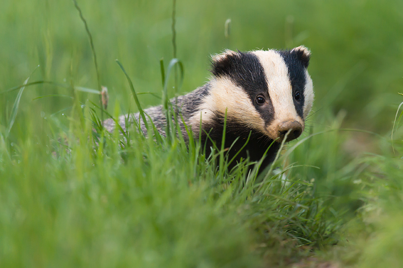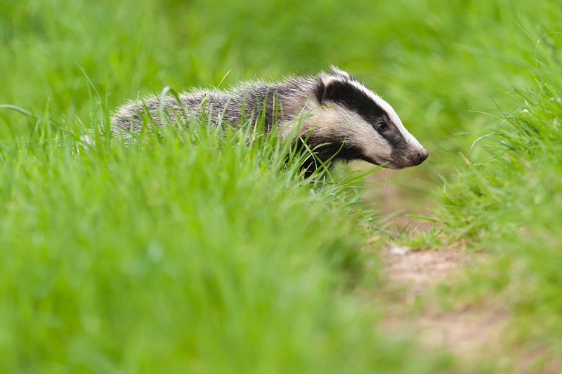 Badgers in and around Dursley, May/June 2012 I have been trying to get some decent shots of badgers, initially using multiple flash in areas where they only come out after dark. This works but the badgers are not keen on the burst of light and scurry off quickly. I have found a more remote area where they emerge well before dusk so no artificial light is necessary but it does mean working at high ISO values; the final picture below was taken at ISO 3200. So far I've usually come across individuals; it would be great to find a group to photograph. ![]()