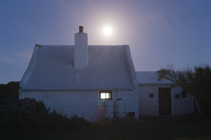 The cottage at night under a near full moon. ![]()