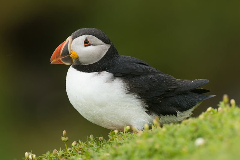 Puffins can be found all around the island; usually by their burrows along the tops of the cliff. This one was near the quay. ![]()
