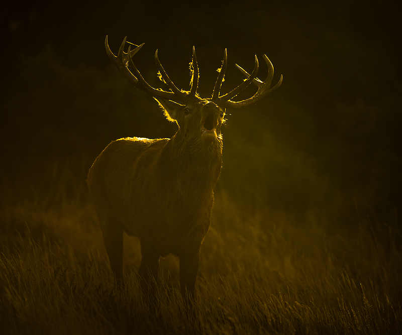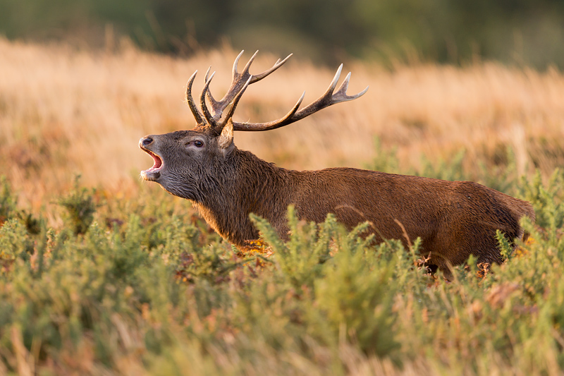 A roaring stag, protecting his hinds from rivals. ![]()