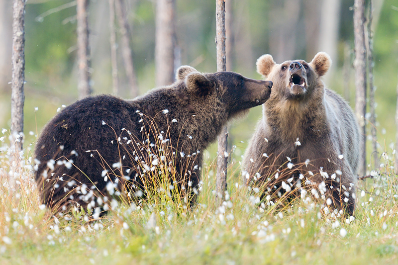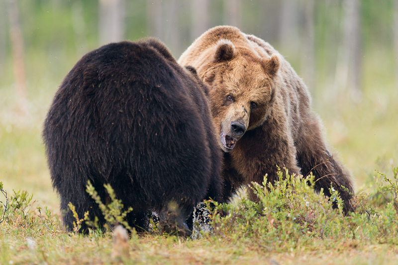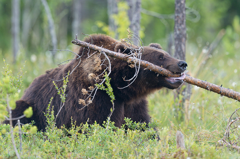 Finland, July 2012 Some images of Europe's top predators from a trip this month to a remote area of Finland close to the Russian border. The weather was far from perfect, and luck with wolves was poor, but here are some images of wolves, brown bears and wolverines. A brown bear mother and three cubs in the "swamp" at Martinselkosen. ![]()