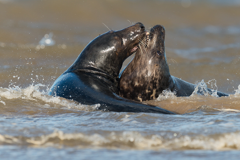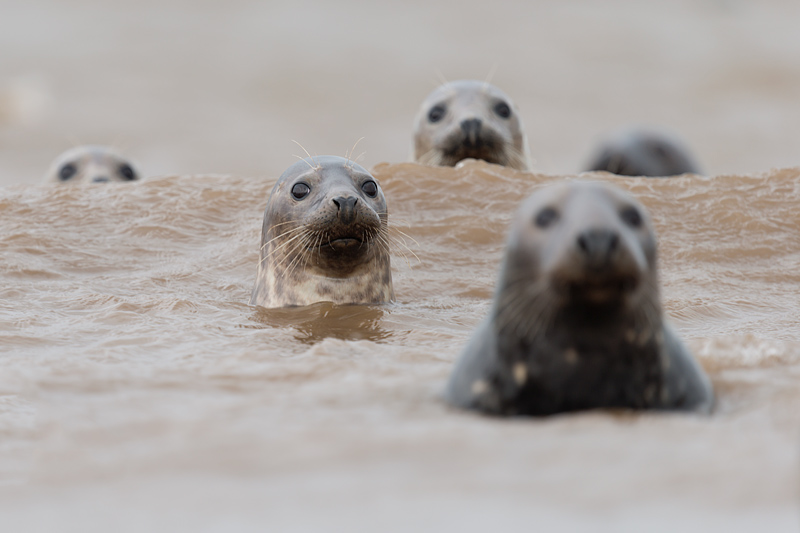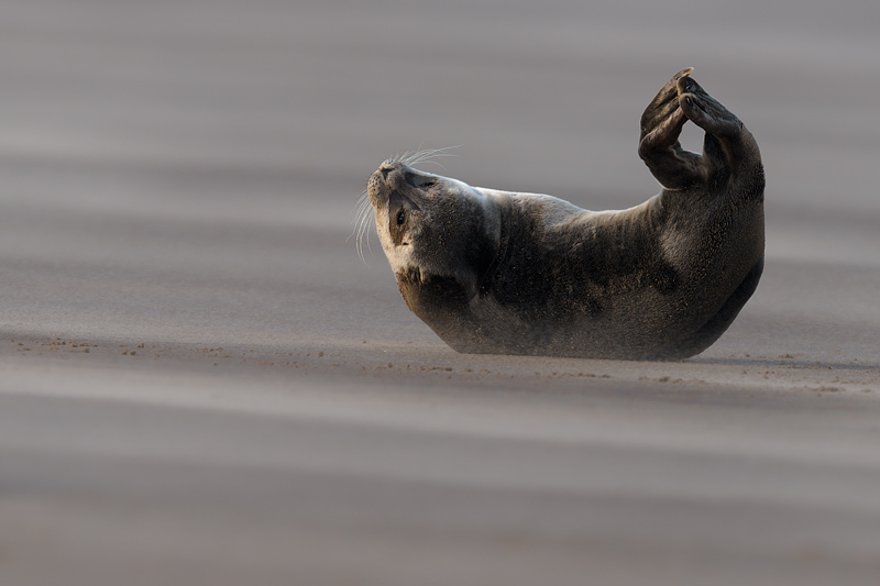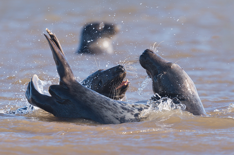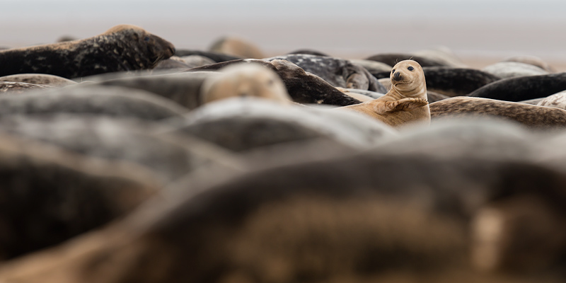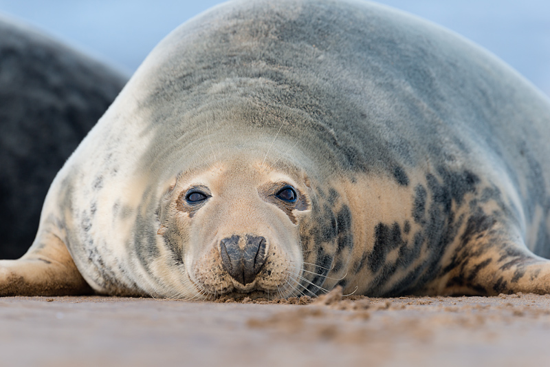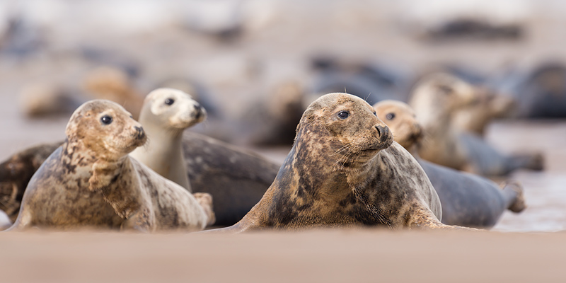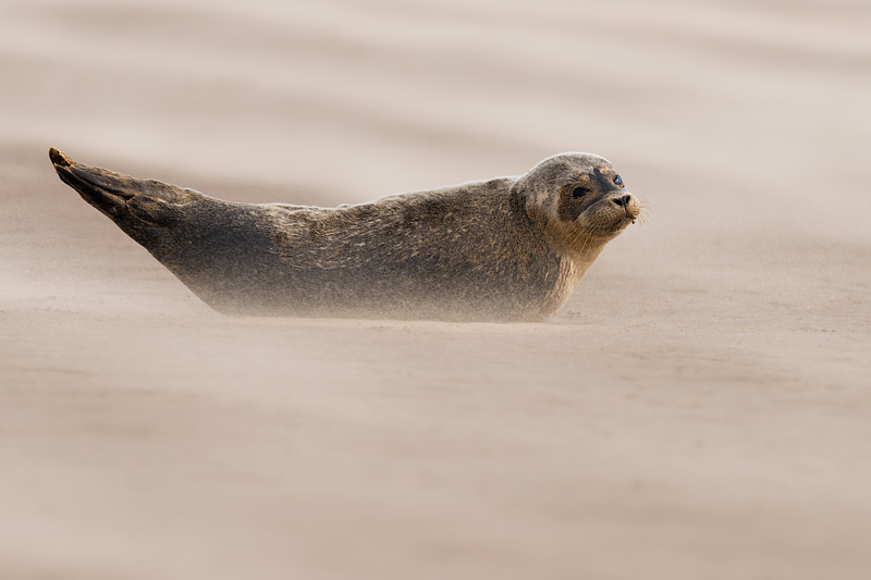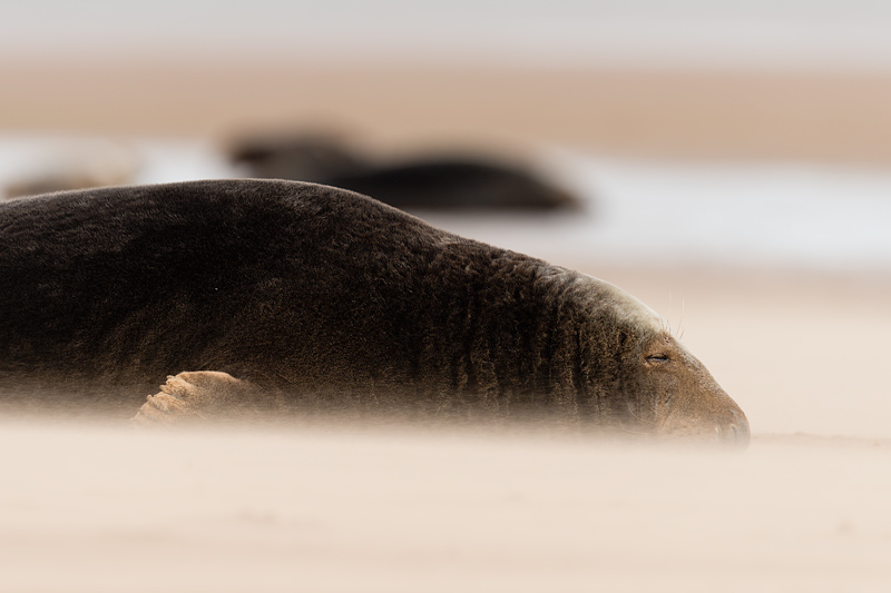 Seals at Donna Nook, Lincolnshire, September 2012 An early autumn weekend at Donna Nook on the Lincolnshire coast provided a wealth of opportunities to photograph adult and juvenile grey seals and some common seal pups. The common seals were born earlier in the year and have left their mothers, and now congregate with the greys. The greys themselves will be pupping in a couple of months, a time when it is best to leave them in complete peace. The seals are on a large sand bank a mile off the coast. This is reached by an arduous trek across mud and sand at lowish tide. We were fortunate in seeing some sun, but the wind remained strong over the whole weekend leading to sand storms after the bank had dried out. This added to the range of images but meant we had to be extra careful with our equipment. ![]()