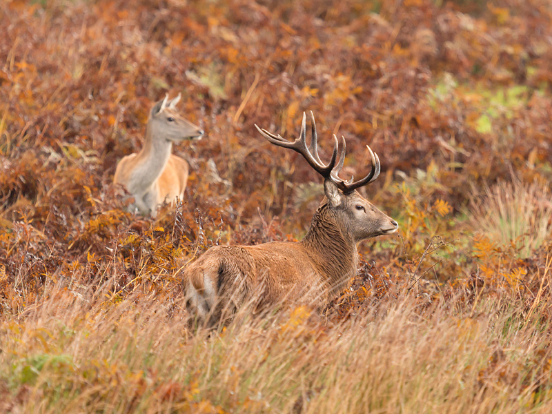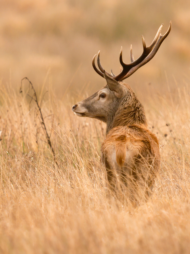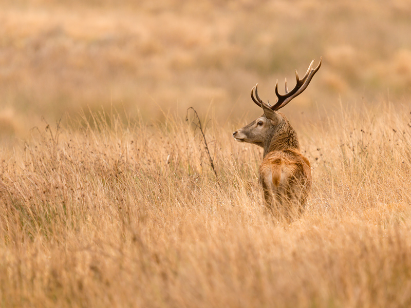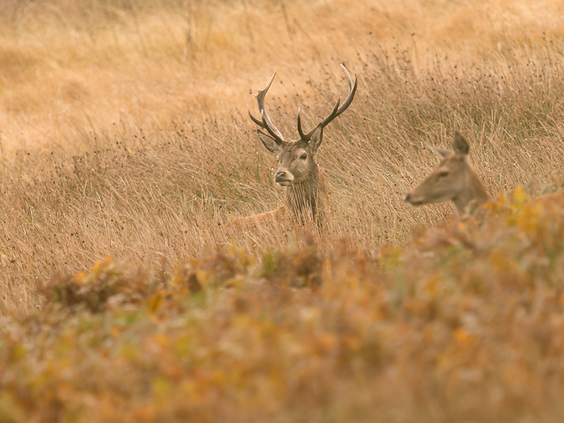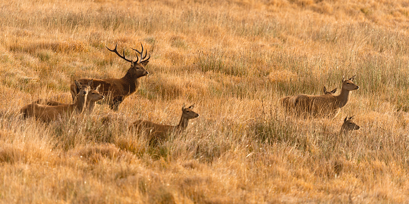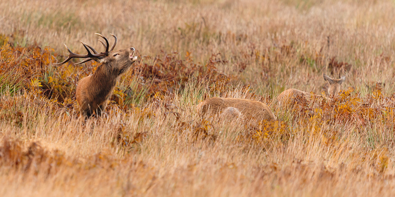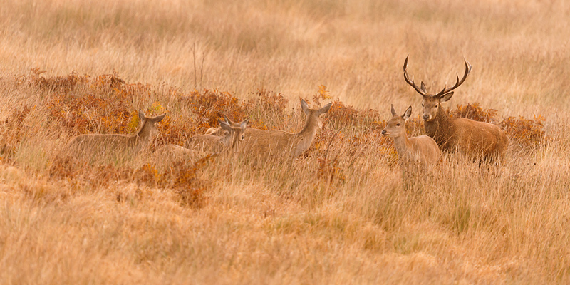 Exmoor, October 2014 The first of a few pictures from a fortnight on Exmoor. I spent some early mornings and evenings attempting to photograph deer in three different places: the high moor, the lower slopes of the moor, and further down just above the wooded valley of the River Barle. On the high moor I came across two groups of red deer, an older stag with approximately 20 hinds and juveniles, and a younger one with just a few. The older stag spent the early morning watching the younger and bellowing to keep him away. ![]()