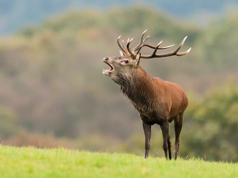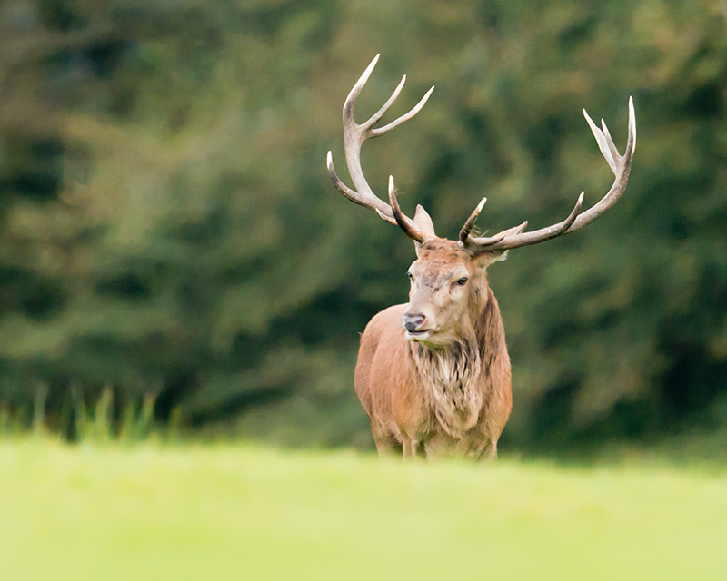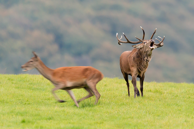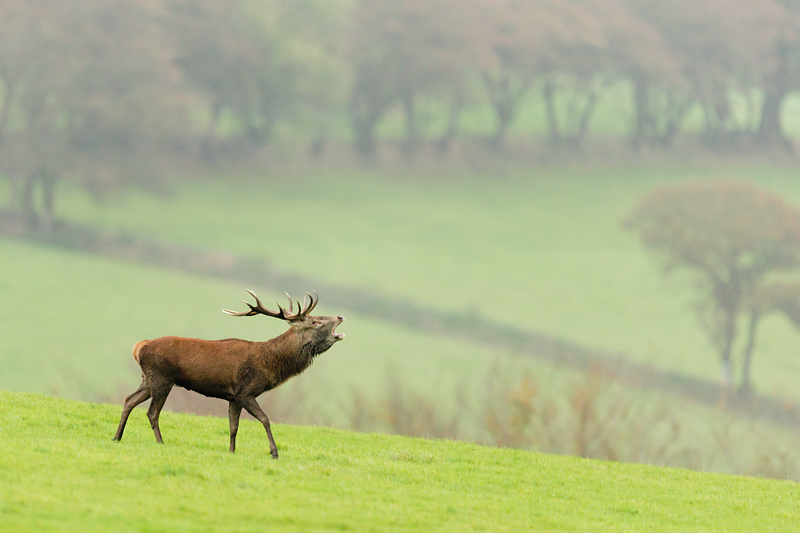The lower slopes proved to be unfruitful, but above the Barle valley, a stag and a few hinds would appear just before dusk in an ungrazed field. Despite the handicap of just one eye, few other stags ventured into his territory. Those bellowing from the woods were kept at bay with a few roars from himself, even when sat down. But one larger stag did venture out late one evening. ![]()