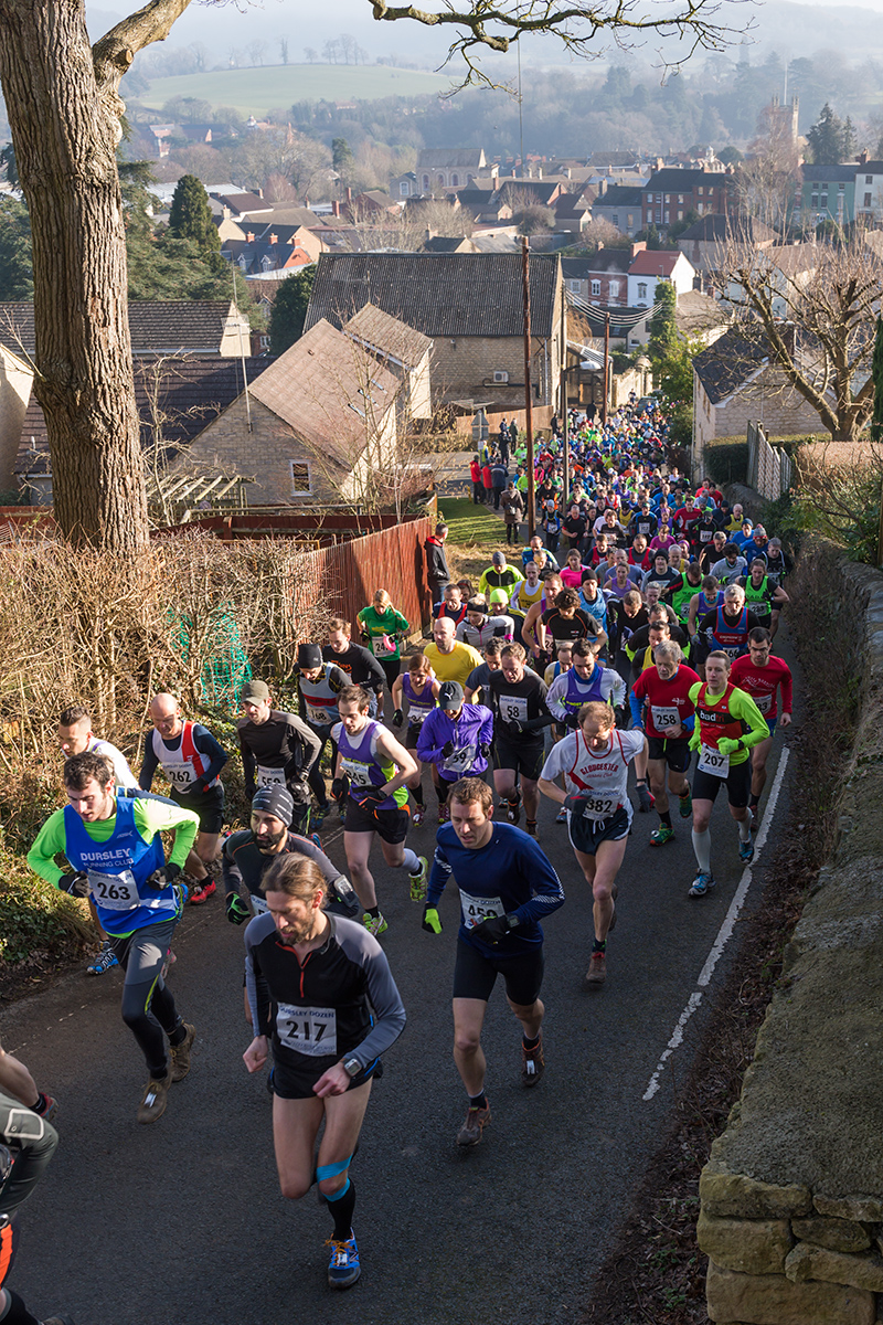 Dursley Dozen 2015, Gloucestershire, February 2015 One picture of the Dursley Dozen 2015 race, taken just after the start as runners ascend the Broadway into the woods on Stinchcombe Hill. The course is a gruelling 12 miles of many ups and downs, mostly off-road. ![]()