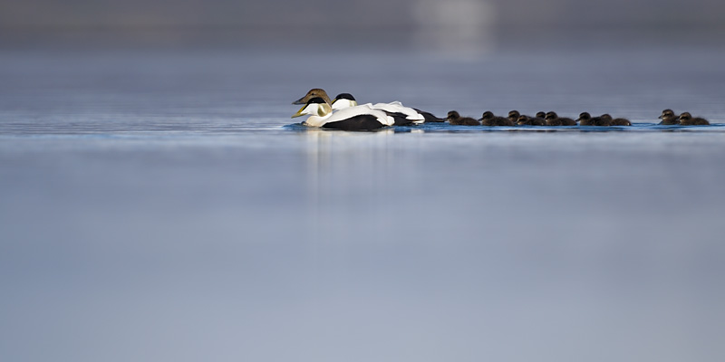 Eider ducks and young at the Flói Nature Reserve
