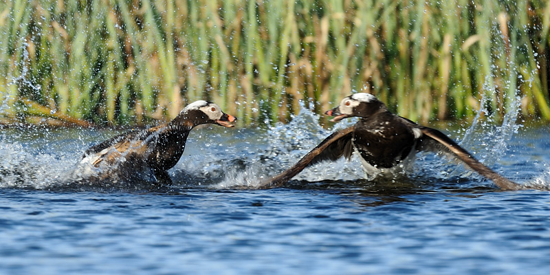 Long-tailed duck fighting off a rival near Lake Mývatn