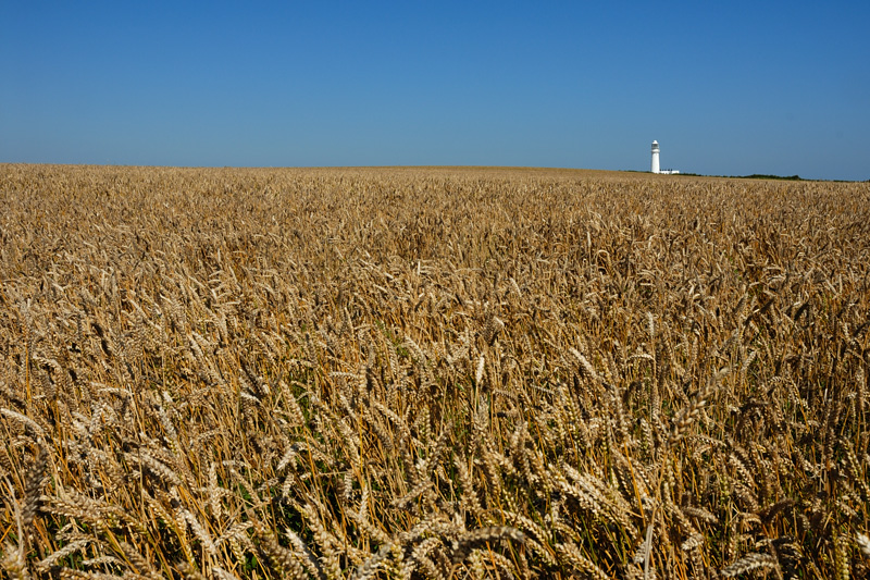 Flamborough Lighthouse, East Yorkshire, from across wheat fields
