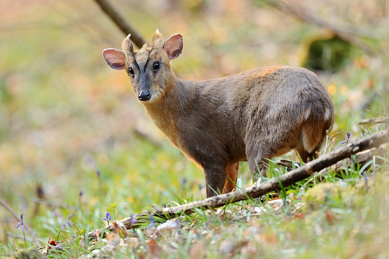 Muntjac deer stag, Cockshoot Wood, Stinchcombe Hill, Dursley, Gloucestershire