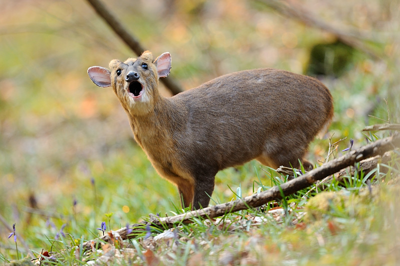 Muntjac deer stag barking, Cockshoot Wood, Stinchcombe Hill, Dursley, Gloucestershire