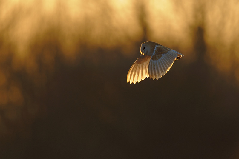 Barn owl hunting at dawn, Cambridge, Gloucestershire