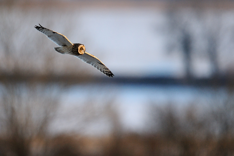 Short-eared owl hunting, Hawling, Gloucestershire
