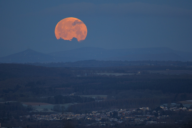 Moonset over the Black Mountains and Lydney, from Stinchcombe Hill, near Dursley, Gloucestershire