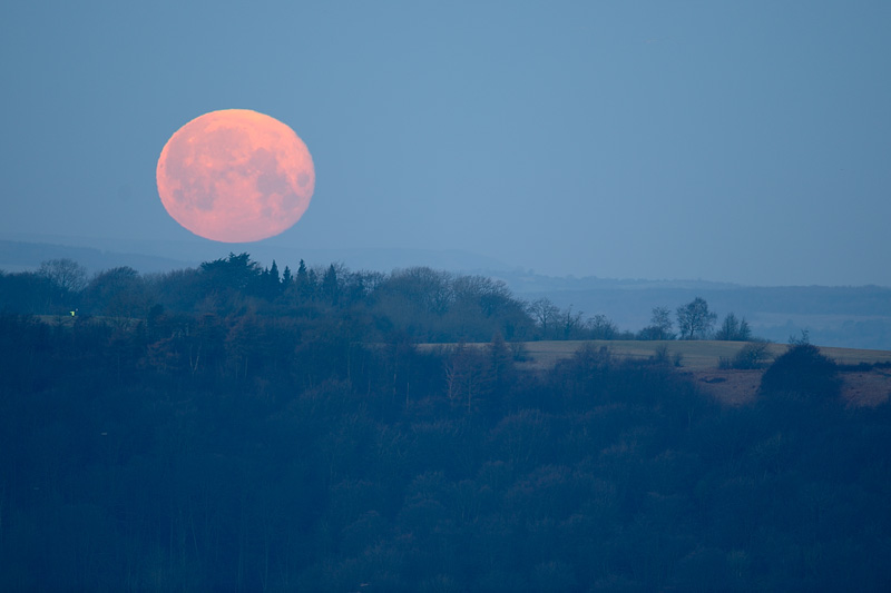 Moonset over Stinchcombe Hill from Uley Bury, near Dursley, Gloucestershire