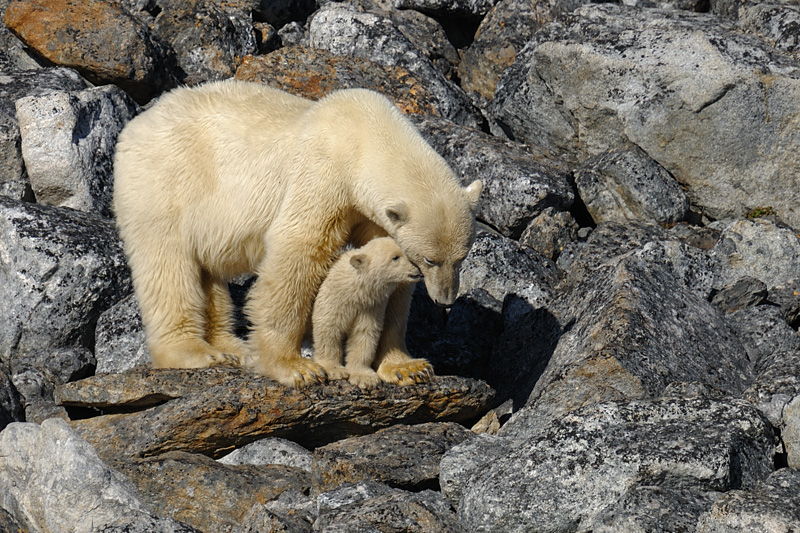 Polar bear with cub, Sallyhamna, Spitsbergen