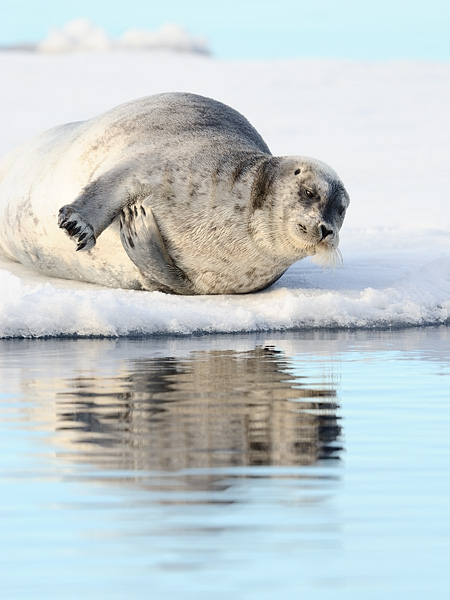 Bearded seal on drift ice, north of Phippsøya, Nordauslandet